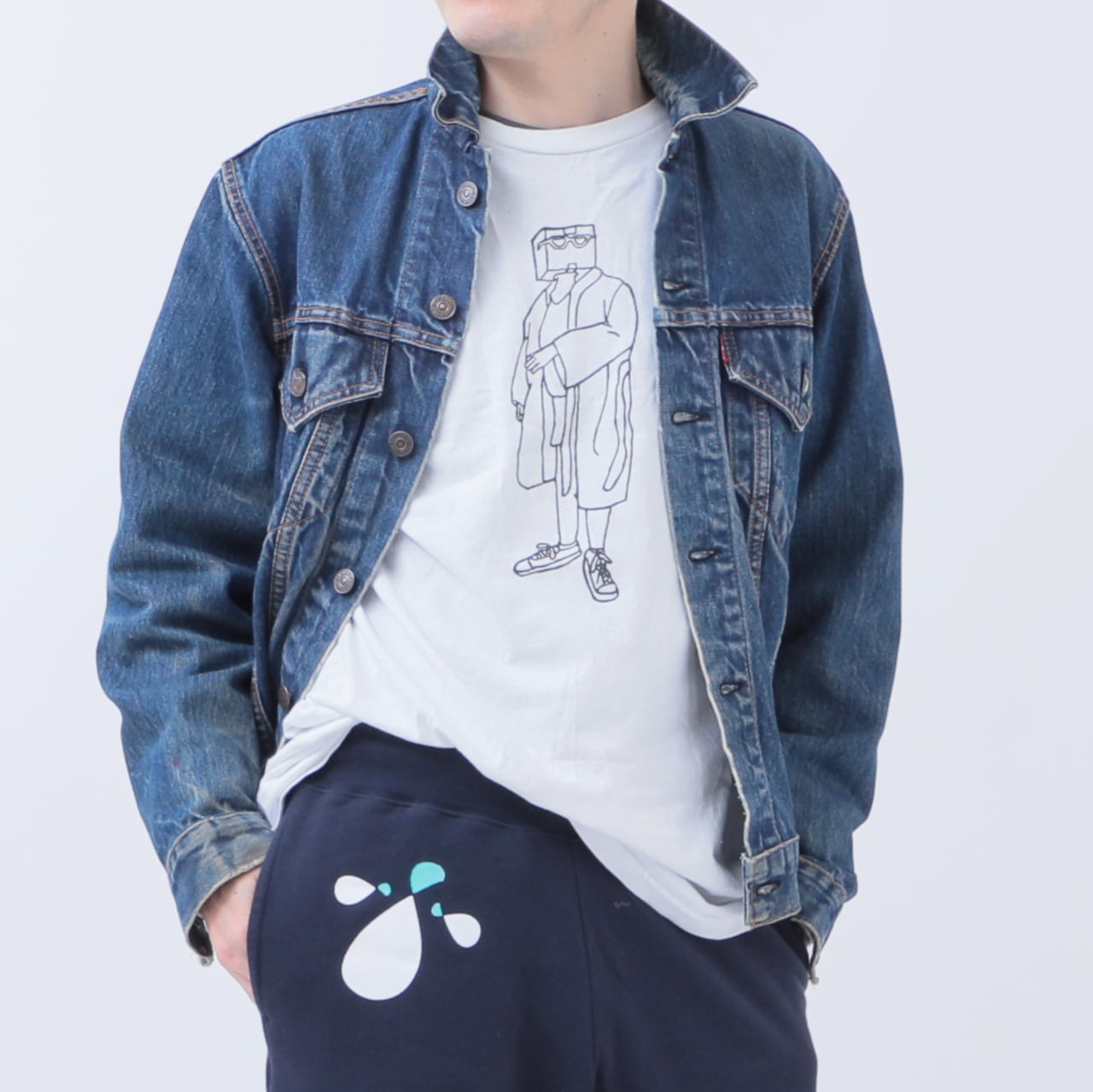 8dropsのロゴを右ポケット部分に配し、左腰にはダンボールマンロゴをプリントしました。